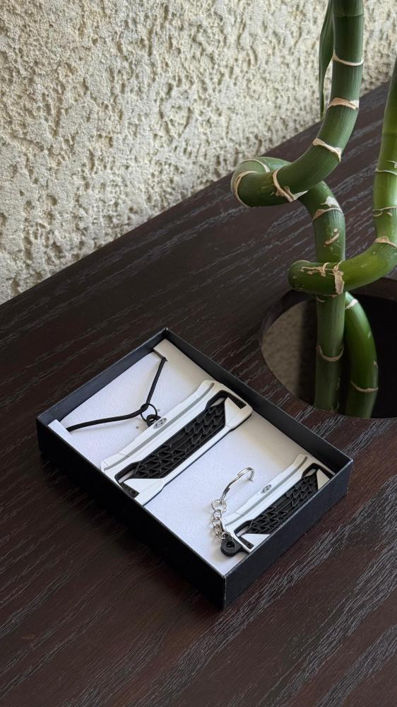 تعليقة تنحط على مراية السيارة الداخلية، ومصممة على شكل واجهة سيارتك بالتفاصيل الدقيقة، مثل الشبك، الشمعات، الكشافات، وكل شيء يميّز واجهة سيارتك.